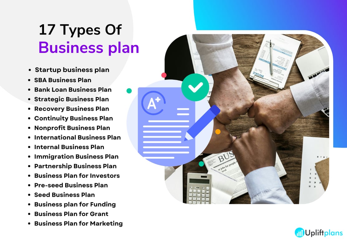 The following are the 17 types of business plans.