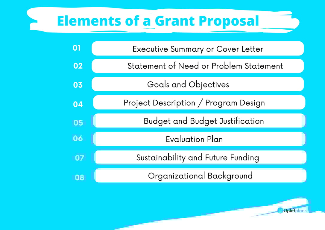 The following is an image of the elements of a grant proposal;
